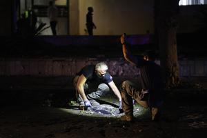 (250407) — ASHKELON, 7 abril, 2025 (Xinhua) — Imagen del 6 de abril de 2025 de personal de seguridad trabajando en el sitio de un ataque con misiles disparado desde la Franja de Gaza, en Ashkelon, Israel. Tres personas resultaron levemente heridas el domingo durante un ataque con misiles contra el sur de Israel por parte de Hamás, lo que provocó que el Ejército israelí lanzara múltiples ataques aéreos contra el centro de Gaza más tarde ese mismo día, de acuerdo con fuentes israelíes y palestinas. (Xinhua/Ilan Assayag/JINI) (rtg) (ah) (vf)
