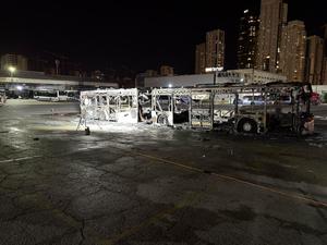 (250220) -- BAT YAM, 20 febrero, 2025 (Xinhua) -- Imagen del 20 de febrero de 2025 del sitio de la explosión de un autobús, en Bat Yam, cerca de Tel Aviv, Israel, el 20 de febrero de 2025. Tres autobuses vacíos explotaron simultáneamente el jueves por la noche en el área de Tel Aviv de Israel, mientras que fueron encontrados dispositivos explosivos en al menos otros dos antes de que pudieran detonar, en lo que la policía dijo que fue un "presunto ataque terrorista". (Xinhua) (jg) (ah) (vf)