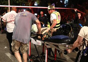(250615) -- BAT YAM, 15 junio, 2025 (Xinhua) -- Rescatistas transportan a una persona herida en ataques con misiles iraníes, en Bat Yam, en el sur de Tel Aviv, Israel, el 15 de junio de 2025. Los ataques aéreos iraníes mataron al menos a seis personas e hirieron a otras 140 en Israel la madrugada del domingo, dijeron las autoridades israelíes. (Xinhua/Gideon Markowicz/JINI) (oa) (da)
