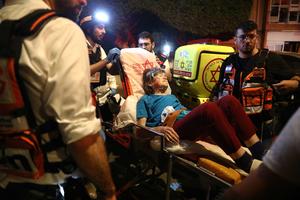 (250615) -- BAT YAM, 15 junio, 2025 (Xinhua) -- Rescatistas transportan a una persona herida en ataques con misiles iraníes, en Bat Yam, en el sur de Tel Aviv, Israel, el 15 de junio de 2025. Los ataques aéreos iraníes mataron al menos a seis personas e hirieron a otras 140 en Israel la madrugada del domingo, dijeron las autoridades israelíes. (Xinhua/Gideon Markowicz/JINI) (oa) (da)