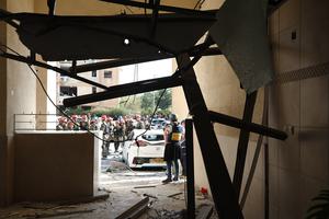 (250619) -- HOLON, 19 junio, 2025 (Xinhua) -- Fuerzas de seguridad y rescate israelíes trabajan en la escena de un ataque con misil, en Holon, en el centro de Israel, el 19 de junio de 2025. El objetivo del ataque llevado a cabo por Irán la mañana del jueves en el sur de Israel eran las instalaciones de inteligencia militar en el lugar, informó la agencia estatal de noticias iraní IRNA. De esta manera, IRNA rechazó las informaciones de que la ofensiva estaba dirigida contra un hospital. (Xinhua/Gideon Markowicz/JINI) (rtg) (ra) (vf)