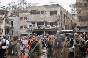 (250616) -- TEL AVIV, 16 junio, 2025 (Xinhua) -- Fuerzas de seguridad y rescate israelíes trabajan en la escena de un ataque con misiles desde Irán, en Tel Aviv, en el centro de Israel, el 16 de junio de 2025. Irán ha lanzado ataques con misiles contra múltiples objetivos en Israel desde el viernes, causando víctimas y daños significativos. (Xinhua/ Jamal Awad/JINI) (rtg) (ce)