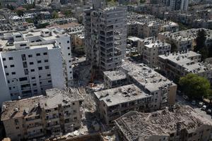 (250616) -- BAT YAM, 16 junio, 2025 (Xinhua) -- Imagen del 15 de junio de 2025 de edificios dañados por un misil disparado desde Irán, en Bat Yam, en el centro de Israel. De acuerdo con la televisora estatal israelí Kan TV News, el número de muertos por los ataques de Irán desde el viernes ha llegado a 14. (Xinhua/Chen Junqing) (oa) (rtg) (ce)