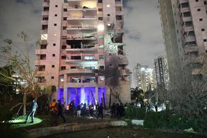 (250616) -- PETAH TIKVA, 16 junio, 2025 (Xinhua) -- Imagen del 16 de junio de 2025 de un edificio dañado en un ataque con misiles iraníes, en Petah Tikva, en el centro de Israel. Irán lanzó el lunes un nuevo ataque con misiles contra Israel antes del amanecer, matando al menos a ocho personas e hiriendo a docenas, dijeron funcionarios israelíes, al intensificarse el conflicto de cuatro días desencadenado por un asalto sorpresa israelí. (Xinhua/JINI) (oa) (rtg) (ce)