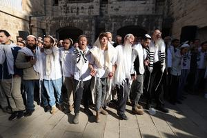 (250418) -- SAFED, 18 abril, 2025 (Xinhua) -- Imagen del 17 de abril de 2025 de devotos judíos asistiendo a una oración de la mañana de Shajarit para la Pascua, en Safed, en el norte de Israel. La Pascua (Pésaj) de este año se celebra en Israel desde el atardecer del 12 de abril hasta la noche del 19 de abril, en conmemoración del éxodo de los israelitas de la esclavitud en el antiguo Egipto hace unos 3.500 años. (Xinhua/David Cohen/JINI) (jg) (da) (ce)