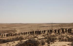 (250922) -- ARAD, 22 septiembre, 2025 (Xinhua) -- Imagen del 21 de septiembre de 2025 de soldados de combate del Ejército israelí recién reclutados participando en un entrenamiento, en un sitio en el sur de Israel. (Xinhua/Gil Cohen Magen) (rtg) (ah) (ce)