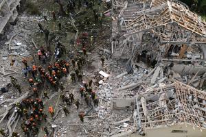 (250622) -- TEL AVIV, 22 junio, 2025 (Xinhua) -- Fuerzas de seguridad y rescate israelíes trabajan en el sitio de un ataque con misiles iraníes, en Tel Aviv, en el centro de Israel, el 22 de junio de 2025. Misiles balísticos lanzados desde Irán hacia el centro y norte de Israel en la mañana del domingo dejaron 26 personas heridas, dos de ellas en estado moderado, informó el servicio nacional de emergencia israelí Magen David Adom. El Cuerpo de los Guardianes de la Revolución Islámica de Irán confirmó el domingo la ofensiva, señalando que la nueva oleada de ataques tuvo como objetivos el Aeropuerto Ben Gurion, en Tel Aviv, y un centro de investigación biológica, entre otros. En un comunicado difundido por su medio oficial Sepah News, el IRGC anunció además el inicio de su vigésima oleada de ataques contra objetivos en el interior de Israel. (Xinhua/Tomer Neuberg/JINI) (oa) (da)