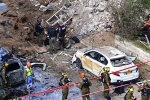 (260324) -- TEL AVIV, 24 marzo, 2026 (Xinhua) -- Fuerzas de seguridad israelíes y rescatistas trabajan en el sitio del ataque con un misil iraní, en Tel Aviv, Israel, el 24 de marzo de 2026. Un misil disparado desde Irán impactó en Tel Aviv el martes, hiriendo a varias personas y causando daños a edificios y vehículos, según informaron las autoridades israelíes. (Xinhua/Tomer Neuberg/JINI) (ah) (ra) (ce)