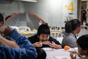 (260402) -- TEL AVIV, 2 abril, 2026 (Xinhua) -- Imagen del 1 de abril de 2026 de un niño comiendo matzá, o pan sin levadura, durante un séder de Pascua en un refugio subterráneo, en Tel Aviv, Israel. La festividad judía de la Pascua, que dura una semana, comenzó al atardecer del 1 de abril y finalizará al atardecer del 8 de abril. Debido a la persistencia del conflicto militar, algunos israelíes optaron por celebrar la tradicional comida festiva en instalaciones protegidas. (Xinhua/Chen Junqing) (da) (ra) (ce)