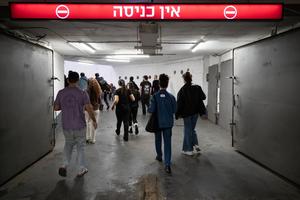 (260304) -- TEL AVIV, 4 marzo, 2026 (Xinhua) -- Imagen del 3 de marzo de 2026 de personas caminando hacia la salida de un refugio subterráneo después de que se levantara la sirena antiaérea, en el centro de Tel Aviv, Israel. Misiles y cohetes disparados desde Irán y Líbano impactaron el martes en el centro y en el norte de Israel, dijeron las autoridades israelíes, hiriendo a una persona y activando sirenas antiaéreas en las principales ciudades. Las sirenas de advertencia sonaron en áreas como Tel Aviv y Jerusalén alrededor del mediodía, enviando a millones de residentes a refugios antiaéreos. (Xinhua/Chen Junqing) (ah) (ra) (vf)
