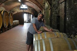 (250821) -- LA MORRA, 21 agosto, 2025 (Xinhua) -- Imagen del 17 de agosto de 2025 del enólogo Fabio Mascarello visto en una bodega, en La Morra, Italia. En la bodega Dosio Vigneti en La Morra, un pequeño poblado de la región vinícola de Barolo, se apilan miles de botellas a más de dos metros de altura. Encargadas por clientes estadounidenses hace meses, las botellas siguen sin entregarse. Según Federvini, la organización italiana de la industria vitivinícola, Estados Unidos es el mayor mercado de exportación para los productores italianos de vino, licores y vinagre. El año pasado, las ventas a Estados Unidos ascendieron a unos 2.000 millones de euros (aproximadamente 2.300 millones de dólares estadounidenses).(Xinhua/Zhang Xinwen) (da) (ra) (vf)