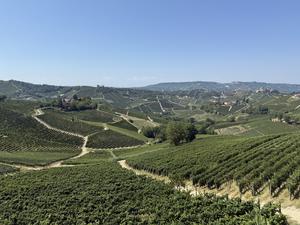 (250821) -- LA MORRA, 21 agosto, 2025 (Xinhua) -- Imagen del 17 de agosto de 2025 de viñedos en Serralunga d'Alba, Italia. En la bodega Dosio Vigneti en La Morra, un pequeño poblado de la región vinícola de Barolo, se apilan miles de botellas a más de dos metros de altura. Encargadas por clientes estadounidenses hace meses, las botellas siguen sin entregarse. Según Federvini, la organización italiana de la industria vitivinícola, Estados Unidos es el mayor mercado de exportación para los productores italianos de vino, licores y vinagre. El año pasado, las ventas a Estados Unidos ascendieron a unos 2.000 millones de euros (aproximadamente 2.300 millones de dólares estadounidenses). (Xinhua/Gao Jingyan) (da) (ra) (vf)