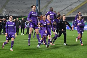 (250207) -- FLORENCIA, 7 febrero, 2025 (Xinhua) -- Imagen del 6 de febrero de 2025 de jugadores de Fiorentina festejando después de ganar un partido de fútbol de la Serie A entre Fiorentina e Inter de Milán, en Florencia, Italia. (Xinhua/Augusto Casasoli) (rtg) (ra) (vf)