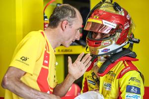 (260420) -- IMOLA, 20 abril, 2026 (Xinhua) -- Imagen del 19 de abril de 2026 del piloto de carreras chino, Ye Yifei (d), de Ferrari AF Corse, conversando con Robert Kubica, de Polonia, previo a la carrera del Campeonato Mundial de Resistencia (WEC, por sus siglas en inglés) 2026 de la FIA en el Autódromo Internacional Enzo e Dino Ferrari, en Imola, Italia. (Xinhua/Qian Jun) (ah) (oa) (ce)