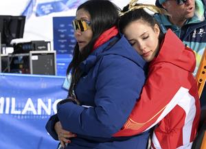 (260222) -- LIVIGNO, 22 febrero, 2026 (Xinhua) -- La medallista de oro, Gu Ailing, de China, abraza a su madre, Gu Yan, al término de la ceremonia de premiación del halfpipe femenino de esquí acrobático en los Juegos Olímpicos de Invierno Milán-Cortina 2026, en Livigno, Italia, el 22 de febrero de 2026. (Xinhua/Xia Yifang) (rtg) (ah)