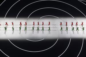 (260206) — MILAN, 6 febrero, 2026 (Xinhua) — Tres grupos de modelos caminan por la pasarela portando creaciones diseñadas por Giorgio Armani durante la ceremonia de inauguración de los Juegos Olímpicos de Invierno de Milán-Cortina 2026 en el Estadio Olímpico San Siro, en Milán, Italia, el 6 de febrero de 2026. (Xinhua/Chen Yichen) (da) (vf)