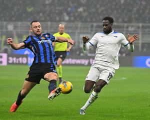 (250226) -- MILAN, 26 febrero, 2025 (Xinhua) -- Imagen del 25 de febrero de 2025 de Stefan De Vrij (i), de Inter Milan, disputando el balón con Boulaye Dia, de Lazio, durante el partido de fútbol de cuartos de final de la Copa Italiana entre Inter Milan y Lazio, en Milán, Italia. (Xinhua/Alberto Lingria) (ah) (ra) (vf)