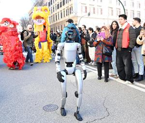 (260223) -- ROMA, 23 febrero, 2026 (Xinhua) -- Imagen del 22 de febrero de 2026 de un robot realizando una presentación durante un desfile del Año Nuevo chino, en Roma, Italia. (Xinhua/Elisa Lingria) (rtg) (ah) (vf)