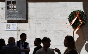 (260425) -- ROMA, 25 abril, 2026 (Xinhua) -- Personas esperan para visitar el Museo de la Liberación de Roma, en Roma, Italia, el 25 de abril de 2026. Italia observó el sábado el 81 aniversario del Día de la Liberación con actividades conmemorativas en todo el país. (Xinhua/Wang Kaiyan) (ra) (da)