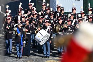 (260425) -- ROMA, 25 abril, 2026 (Xinhua) -- Una banda militar realiza una presentación en una ceremonia para conmemorar el Día de la Liberación de Italia en el Monumento a Víctor Manuel II, en Roma, Italia, el 25 de abril de 2026. Italia conmemoró el sábado el 81 aniversario de su liberación del fascismo. (Xinhua/Alberto Lingria) (ra) (da)