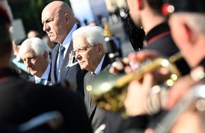 (250603) -- ROMA, 3 junio, 2025 (Xinhua) -- Imagen del 2 de junio de 2025 del presidente italiano, Sergio Mattarella (c), asistiendo a las celebraciones del Día de la República, en Roma, Italia. Italia conmemoró el lunes el 79° aniversario de su fundación como una república, con el presidente Sergio Mattarella haciendo un llamado a la paz y a la cooperación internacional. (Xinhua/Alberto Lingria) (oa) (ra) (ce)