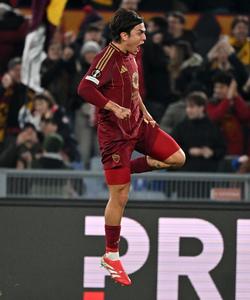 (250221) -- ROMA, 21 febrero, 2025 (Xinhua) -- Imagen del 20 de febrero de 2025 de Paulo Dybala, de Roma, festejando su primera anotación durante el partido de fútbol de la Europa League de la UEFA, entre Roma y Porto, en Roma, Italia. (Xinhua/Augusto Casasol) (rtg) (ra) (vf)