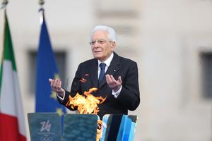 (251205) — ROMA, 5 diciembre, 2025 (Xinhua) — El presidente italiano, Sergio Mattarella, habla durante la ceremonia de encendido del pebetero de los Juegos Olímpicos de Invierno Milán-Cortina 2026 en el Palacio del Quirinal, en Roma, Italia, el 5 de diciembre de 2025. (Xinhua/Li Jing) (oa) (ra) (vf)