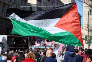 (260329) -- ROMA, 29 marzo, 2026 (Xinhua) -- Imagen del 28 de marzo de 2026 de personas participando en una manifestación contra la guerra, en Roma, Italia. Una manifestación contra la guerra se llevó a cabo aquí el sábado para mostrar apoyo a Palestina e Irán. (Xinhua/Wang Kaiyan) (oa) (ah)