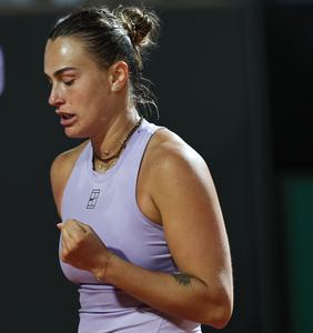 (250515) -- ROMA, 15 mayo, 2025 (Xinhua) -- Imagen del 14 de mayo de 2025 de Aryna Sabalenka festejando un punto durante el partido de cuartos de final de individuales femeninos entre Zheng Qinwen, de China, y Aryna Sabalenka, de Bielorrusia, en el Abierto de Italia de la WTA, en Roma, Italia. (Xinhua/Li Jing) (rtg) (ra) (vf)
