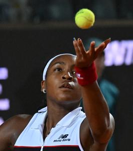 (250516) -- ROMA, 16 mayo, 2025 (Xinhua) -- Imagen del 15 de mayo de 2025 de Coco Gauff sirviendo la pelota durante el partido de semifinal de individuales femeninos ente Zheng Qinwen, de China, y Coco Gauff, de Estados Unidos, en el Abierto de Italia de la WTA, en Roma, Italia. (Xinhua/Alberto Lingria) (rtg) (ra) (vf)