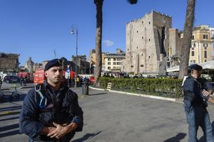 (251103) -- ROMA, 3 noviembre, 2025 (Xinhua) -- Policías y bomberos trabajan en el sitio después de que una sección de la Torre dei Conti, una torre medieval actualmente en restauración, se derrumbara, en el centro de Roma, Italia, el 3 de noviembre de 2025. Una sección de la Torre dei Conti se derrumbó el lunes, hiriendo a cuatro trabajadores de la construcción y desencadenando una operación de rescate de emergencia, informaron medios locales. (Xinhua/Alberto Lingria) (rtg) (ah) (ce)