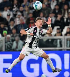 (251006) -- TURIN, 6 octubre, 2025 (Xinhua) -- Imagen del 5 de octubre de 2025 de Francisco Conceicao, de Juventus, cabeceando el balón durante el partido de fútbol de la Serie A, entre Juventus y AC Milan, en Turín, Italia. (Xinhua/Alberto Lingria) (rtg) (ah) (vf)