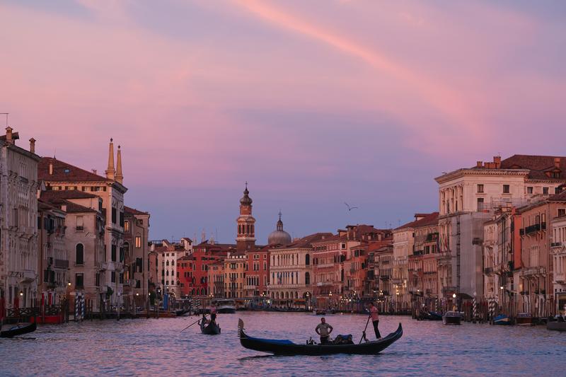 (250908) — VENECIA, 8 septiembre, 2025 (Xinhua) — Imagen del 7 de septiembre de 2025 de personas remando en botes al atardecer después de la Regata Histórica, en Venecia, Italia. La Regata Histórica es un desfile anual de botes y una carrera de remo en el Gran Canal de Venecia. (Xinhua/Li Jing) (oa) (ah) (ce)