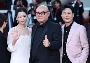 (250907) -- VENECIA, 7 septiembre, 2025 (Xinhua) -- Imagen del 6 de septiembre de 2025 del elenco principal de la película "The Sun Rises on Us All" llegando a la alfombra roja previo a la ceremonia de premiación del 82° Festival Internacional de Cine de Venecia, en Venecia, Italia. La actriz china, Xin Zhilei, ganó la noche del sábado el premio por Mejor Actriz en el 82° Festival de Cine de Venecia por su papel en la película "The Sun Rises on Us All". El 82° Festival de Cine de Venecia duró del 27 de agosto al 6 de septiembre en la isla de Lido, en Venecia, Italia, con 21 cintas en la competencia principal. (Xinhua/Li Jing) (rtg) (da)