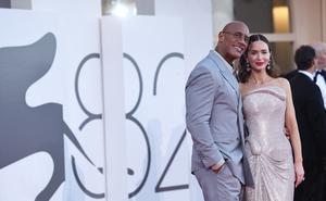 (250902) -- VENECIA, 2 septiembre, 2025 (Xinhua) -- Imagen del 1 de septiembre de 2025 de Dwayne Johnson (i) y Emily Blunt posando en la alfombra roja previo al estreno de la película "Smashing Machine" en el 82º Festival de Cine de Venecia, en Venecia, Italia. (Xinhua/Li Jing) (oa) (ah) (vf)