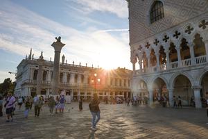 (250719) -- VENECIA, 19 julio, 2025 (Xinhua) -- Imagen del 17 de julio de 2025 de turistas visitando la Plaza de San Marcos, en Venecia, Italia. (Xinhua/Li Jing) (jg) (da)