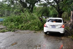 (251028) -- KINGSTON, 28 octubre, 2025 (Xinhua) -- Imagen cedida por el Jamaica Observer el 28 de octubre de 2025 de un hombre intentando quitar las ramas de un árbol caído tras el paso del huracán Melissa, en la ciudad de Kingston, capital de Jamaica. Melissa tocó tierra el martes en el suroeste de la isla de Jamaica, en el Caribe, como un poderoso huracán categoría 5 con vientos máximos sostenidos de hasta 295 kilómetros por hora, informó el Centro Nacional de Huracanes de Estados Unidos. (Xinhua/Jamaica Observer) (ah) (dp) ***CREDITO OBLIGATORIO***