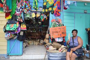 (250710) -- MONTEGO BAY, 10 julio, 2025 (Xinhua) -- Imagen del 6 de julio de 2025 de una vendedora frente a su tienda en un mercado de artesanías, en Montego Bay, Jamaica. Montego Bay, una importante ciudad de Jamaica, es un famoso puerto y destino turístico en la región del Caribe, conocido por su extensa costa y su rico patrimonio histórico. Con sus modernos balnearios, su vibrante vida callejera y sus característicos mercados locales, atrae a visitantes de todo el mundo. (Xinhua/Li Mengxin) (rtg) (ra) (vf)