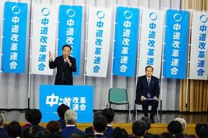 (260122) -- TOKIO, 22 enero, 2026 (Xinhua) -- El colíder del nuevo partido opositor Alianza Reformista Centrista, Yoshihiko Noda (i), habla en una convención, en Tokio, Japón, el 22 de enero de 2026. El nuevo partido opositor japonés, Alianza Reformista Centrista, llevó a cabo una convención el jueves para celebrar su lanzamiento oficial antes de las elecciones generales a la cámara baja del 8 de febrero. El nuevo partido se formó la semana pasada entre el principal opositor Partido Constitucional Democrático de Japón y el partido Komeito, con el objetivo de derrotar al bloque gobernante conservador liderado por el Partido Liberal Democrático de la primera ministra Sanae Takaichi en las próximas elecciones. (Xinhua/Jia Haocheng) (da) (ra)
