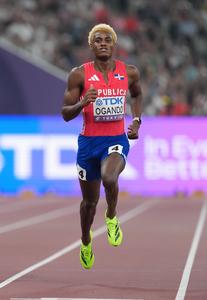(250917) -- TOKIO, 17 septiembre, 2025 (Xinhua) -- Alexander Ogando, de República Dominicana, compite durante las eliminatorias de 200m masculinos, en el Campeonato Mundial de Atletismo de 2025, en Tokio, Japón, el 17 de septiembre de 2025. (Xinhua/Jiang Han) (ah) (vf)