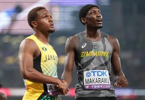 (250917) --TOKIO, 17 septiembre, 2025 (Xinhua) -- Adrian Kerr (i), de Jamaica, y Tapiwanashe Makarawu, de Zimbabue, son vistos al término de las eliminatorias de 200m masculinos, en el Campeonato Mundial de Atletismo de 2025, en Tokio, Japón, el 17 de septiembre de 2025. (Xinhua/Jiang Han) (jg) (da) (ce)