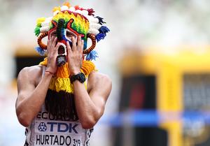 (250920) -- TOKIO, 20 septiembre, 2025 (Xinhua) -- David Hurtado, de Ecuador, reacciona al término de la final de 20km de marcha masculina, en el Campeonato Mundial de Atletismo 2025, en Tokio, Japón, el 20 de septiembre de 2025. (Xinhua/Jia Haocheng) (oa) (ra) (ce)
