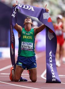 (250920) -- TOKIO, 20 septiembre, 2025 (Xinhua) -- El medallista de oro, Caio Bonfim, de Brasil, festeja al término de la final de 20km de marcha masculina, en el Campeonato Mundial de Atletismo 2025, en Tokio, Japón, el 20 de septiembre de 2025. (Xinhua/Jia Haocheng) (oa) (ra) (ce)
