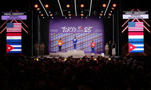 JAPÓN-TOKIO-ATLETISMO-CAMPEONATO MUNDIAL DE ATLETISMO-LANZAMIENTO DE DISCO FEMENINO-CEREMONIA DE PREMIACION