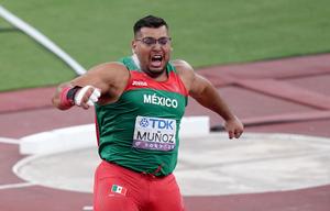 (250913) -- TOKIO, 13 septiembre, 2025 (Xinhua) -- Uziel Muñoz, de México, festeja durante la final de lanzamiento de peso masculino en el Campeonato Mundial de Atletismo 2025, en Tokio, Japón, el 13 de septiembre de 2025. (Xinhua/Ju Huanzong) (rtg) (da)
