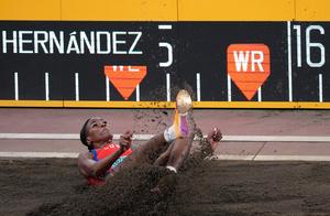 (250918) -- TOKIO, 18 septiembre, 2025 (Xinhua) -- Leyanis Pérez Hernández, de Cuba, compite durante la final de salto triple femenino, en el Campeonato Mundial de Atletismo 2025, en Tokio, Japón, el 18 de septiembre de 2025. (Xinhua/Ju Huanzong) (jg) (ah) (vf)