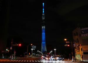 (250620) -- TOKIO, 20 junio, 2025 (Xinhua) -- El Tokyo Skytree se ilumina de azul para conmemorar el Día Mundial del Refugiado, en Tokio, Japón, el 20 de junio de 2025. (Xinhua/Jia Haocheng) (oa) (ra)