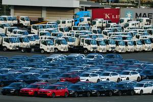 (250708) -- TOKIO, 8 julio, 2025 (Xinhua) -- Imagen del 8 de julio de 2025 de vehículos a la venta en un puerto, en Yokohama, Japón. El primer ministro japonés, Shigeru Ishiba, dijo el martes que la decisión del presidente estadounidense, Donald Trump, de imponer un arancel del 25 por ciento a Japón es "verdaderamente lamentable", si bien aclaró que la negociación proseguirá hasta alcanzar un acuerdo mutuamente beneficioso. (Xinhua/Jia Haocheng) (oa) (ah) (vf)
