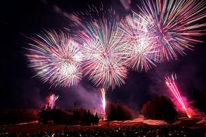 JAPON-YAMANASHI-MONTE FUJI-ESPECTACULO DE FUEGOS ARTIFICIALES
