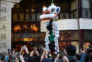 (250129) -- YOKOHAMA, 29 enero, 2025 (Xinhua) -- Turistas observan una presentación de la danza de león en el Barrio Chino de Yokohama, Japón, el 29 de enero de 2025. Turistas llegaron al Barrio Chino aquí para disfrutar del ambiente festivo de la Fiesta de la Primavera. (Xinhua/Jia Haocheng) (ah) (ra) (ce)